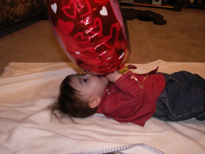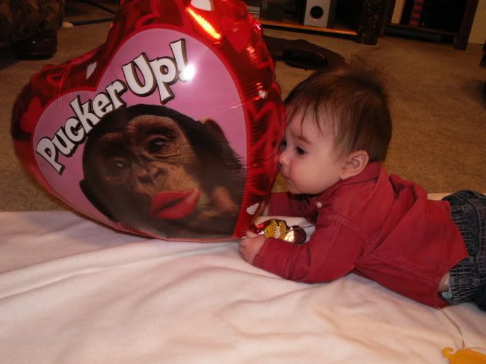 Playing with the "monkey balloon" mama got him for Valentine's Day